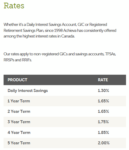 Achieva Down to 1.30% | Achieva Financial | Discussion forum This forum requires Javascript to be enabled for posting content Please consider registeringguest Log In Register Login name Password Remember me Register | Lost password? Select Forum Announcements New members welcome and introductions Site suggestions Credit card reward programs General comparisons General financial discussion GIC discussions Income tax filing Investing Mortgages RRSPs and RRIFs Small business accounts Tax Free Savings Accounts Your stories Achieva Financial Alterna Bank BMO Bridgewater Bank Canadian Tire CIBC Coast Capital Savings DUCA Credit Union EQ Bank Hubert Financial ICICI Bank Ideal Savings Laurentian Bank LBC Digital Luminus Financial Manulife Bank MAXA Financial MCAN Financial Meridian Credit Union Motive Financial motusbank National Bank Neo Financial Oaken Financial Omnia Direct Outlook Financial PC Financial Peoples Trust RBC Royal Bank Saven Financial Scotiabank Simplii Financial Steinbach Credit Union Tangerine Bank Vancity Wealth One Bank of Canada Wealthsimple AcceleRate Financial Ally B2B Bank Citizens Bank HSBC Implicity Financial Wyth Financial (formerly Concentra Bank) Zag Bank Zenbanx Search Advanced Search Advanced Search— Forum Scope —Current forumAll forums— Match —Match any wordMatch all wordsMatch phrase— Forum Options —Posts onlyTopic titles onlyPosts and topic titlesMinimum search word length is 3 characters - maximum search word length is 84 characters Search Home Discussion forum Achieva Financial Achieva Down to 1.30% Topic RSS Achieva Down to 1.30% Facebook Twitter Email this October 1, 202011:55 am PMcNamara16 Member Members Forum Posts: 9 Member Since: May 22, 2019 Offline 1 Just went to log in and noticed Acheiva has dropped to 1.30% for all accounts. October 1, 20203:22 pm rodeworthy Member Members Forum Posts: 203 Member Since: February 1, 2016 Offline 2 GIC rates down too: All RSS © Simple:Press New/Recently Updated Topics Tangerine CC Mastercard Costco Gas? Finding the best GIC Rates TD Easy Trade 2025 Spring Offer (EASYSTA… TFSA with EQ? Amazon.ca knows too much about us???? 24/5 Round-The-Clock U.S. Stock Trading … Vanilla Prepaid Visa Card (product of Pe… Windows 11 Pros & Cons Laurentian LBC and B2B become the latest… External Transfers with Meridian New Promo Savings Accounts 4.70% (385% +… Motive Financial accounts migrating to N… Whaaat? Just this and no chocolates this… GIC stuck in processing Oaken App Issue & Voice Authenticati… Problems & Issues Linking External A… Limited Time Offer!! Open 1st Simplii TFSA to earn 3.90% for … Grow your savings with an amazing 2.75%*… Tangerine GIC rates
