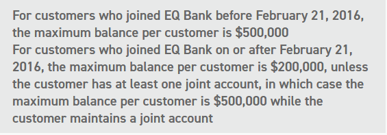 That is not quite correct James. The issue is that EQ Bank restricts the size of your account balance. As per their website: