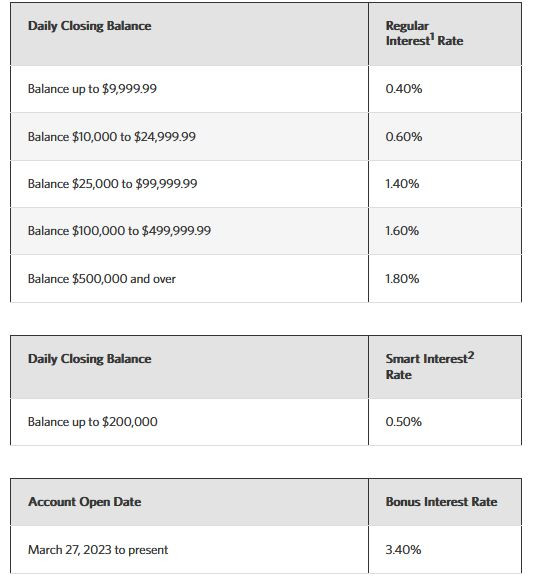 eAdvantage regular interest rate *tiered* | CIBC | Discussion forum This forum requires Javascript to be enabled for posting content Please consider registeringguest Log In Register Login name Password Remember me Register | Lost password? Select Forum Announcements New members welcome and introductions Site suggestions Credit card reward programs General comparisons General financial discussion GIC discussions Income tax filing Investing Mortgages RRSPs and RRIFs Small business accounts Tax Free Savings Accounts Your stories Achieva Financial Alterna Bank BMO Bridgewater Bank Canadian Tire CIBC Coast Capital Savings DUCA Credit Union EQ Bank Hubert Financial ICICI Bank Ideal Savings Laurentian Bank LBC Digital Luminus Financial Manulife Bank MAXA Financial MCAN Financial Meridian Credit Union Motive Financial motusbank National Bank Neo Financial Oaken Financial Omnia Direct Outlook Financial PC Financial Peoples Trust RBC Royal Bank Saven Financial Scotiabank Simplii Financial Steinbach Credit Union Tangerine Bank Vancity Wealth One Bank of Canada Wealthsimple AcceleRate Financial Ally B2B Bank Citizens Bank HSBC Implicity Financial Wyth Financial (formerly Concentra Bank) Zag Bank Zenbanx Search Advanced Search Advanced Search— Forum Scope —Current forumAll forums— Match —Match any wordMatch all wordsMatch phrase— Forum Options —Posts onlyTopic titles onlyPosts and topic titlesMinimum search word length is 3 characters - maximum search word length is 84 characters Search Home Discussion forum CIBC eAdvantage regular interest rate *tiered* Topic RSS eAdvantage regular interest rate *tiered* Facebook Twitter Email this June 29, 20237:14 am hwyc GTA Member Members Forum Posts: 1390 Member Since: September 30, 2017 Offline 1 See screenshot ... They just took one step away from me All RSS © Simple:Press New/Recently Updated Topics Up/Down Vote, Block User Brokerage investment savings accounts Finding the best GIC Rates TFSA with EQ? 24/5 Round-The-Clock U.S. Stock Trading … Amazon.ca knows too much about us???? Vanilla Prepaid Visa Card (product of Pe… Windows 11 Pros & Cons Laurentian LBC and B2B become the latest… External Transfers with Meridian New Promo Savings Accounts 4.70% (385% +… Motive Financial accounts migrating to N… Whaaat? Just this and no chocolates this… GIC stuck in processing Oaken App Issue & Voice Authenticati… Problems & Issues Linking External A… Limited Time Offer!! Open 1st Simplii TFSA to earn 3.90% for … Grow your savings with an amazing 2.75%*… Tangerine GIC rates