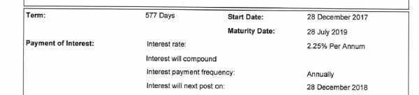 Here's a screenshot from my 19-month GIC of the actual certificate in days. It was simple, though, I just divided it by 19 and got my answer fairly easily: