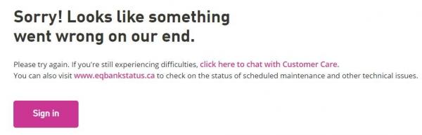 Rest assured we've got our best teams working hard to find a fix. For updates, visit http://www.eqbankstatus.ca.”