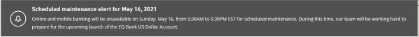 EQ Bank has completed development of a new U.S. currency account for launch in mid-May, increasing its value proposition to customers by offering customers the ability to earn more while saving on their U.S. dollar transactions.