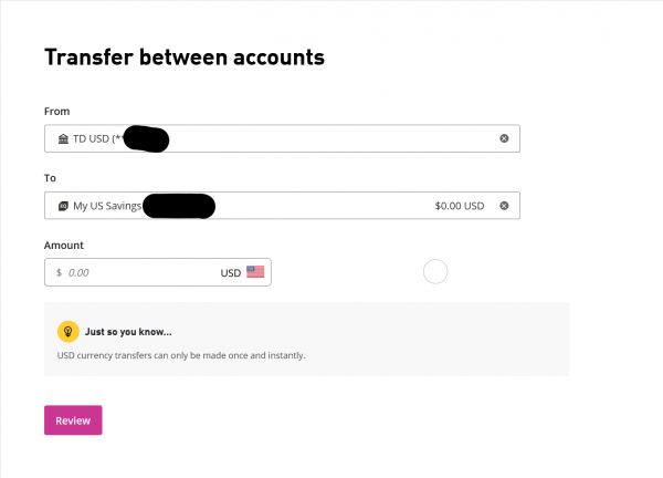 This message when I was about to transfer between a linked USD account to the EQ Bank USD account:"Just so you know...