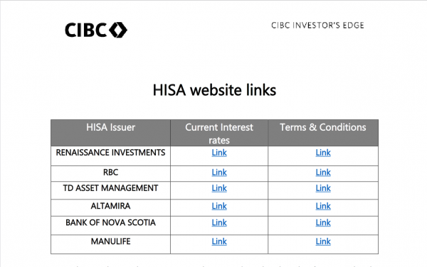 In fact CIBC Renaissance is, IMO, an embarrassment to CIBC as they are both by far the slowest to raise rates and when they do, still have one of the lowest rates. They have to get their own ISA.
