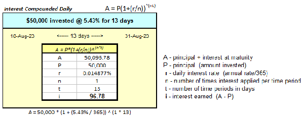 The $96.78 comes up a bit short of the $101.50 that the Principal was increased by. Using 14 days puts it over that mark to $104.24.