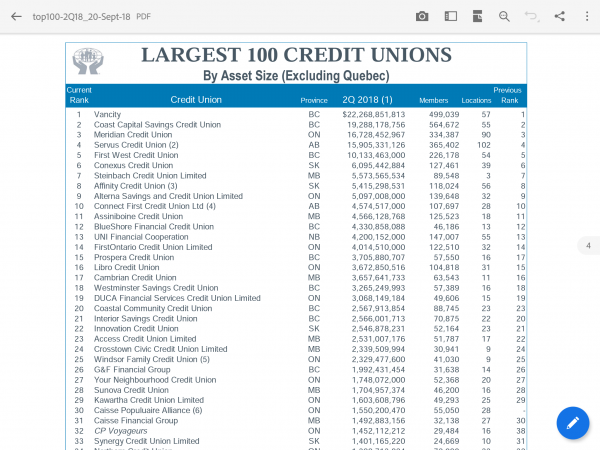 Yep, that's about what I figured. I was going to say top 25, but hedged that they'd be in the top 50. About the size of AcceleRate Financial parent company Crosstown Civic Credit Union. Slightly smaller than Interior Savings Credit Union, which, interestingly, is a potential merger candidate if they ever wanted to expand into the B.C. Interior and Interior Savings to the coast.