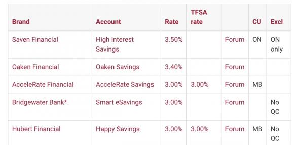 OfflineDenise: VanCity deposit rates suck; it's from Peoples and Oaken that my 2.6% and 3.4% funds are coming. I'm very happy with Peoples - they are my largest deposit holder and very satisfactory. Peoples tends to move their rates slowly, (both when raising and reducing) so I don't worry much about them lagging a bit behind others, as they usually catch up in a couple of weeks. Oaken is a bit more of a pain to deal with (long phone waits, a few less options such as the lack of TFSA savings accounts) but I keep mostly only GICs there.