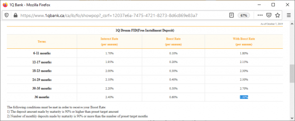 Note that interest on the 1Q Dream FID account, which appears to be a kind of goal-defined savings account, is paid at the end date, up to 3 years, which is not ideal for taxable accounts. This is a very strange kind of account, and hard to get a handle on.