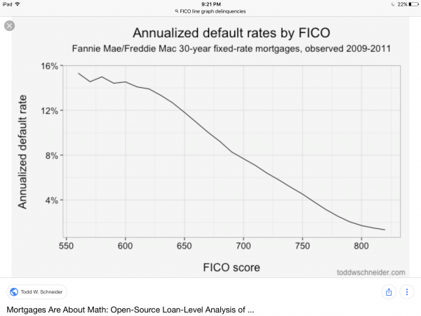 One can see that inaccuracy in the graph Vatox posted, in the 550 to 600 range. The default rate for some of those scores are actually lower than the default rate for the next higher score. Imagine that: higher credit score but higher default rate!