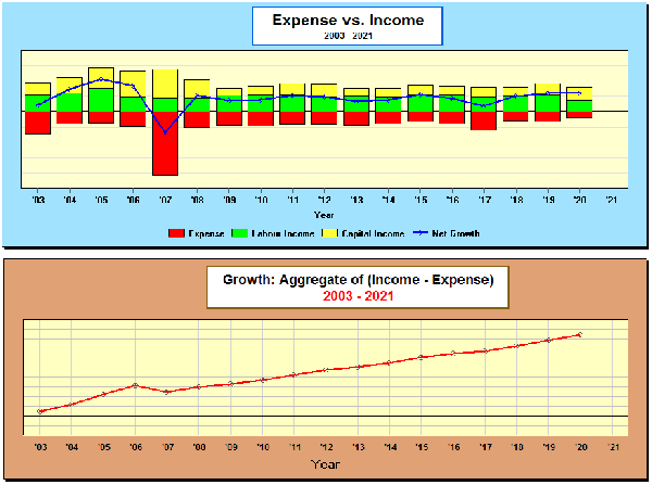 and all income from capital converts to more capital.The Growth chart debunks the theory that we are going to run out of money in our old age. We are already there and doing quite well, thank you.