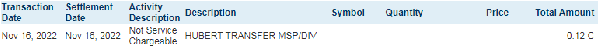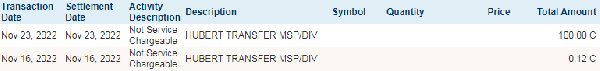 There is a strange notation in the 'Activity Description' column - "Not Service Chargeable" which I don't know what it means but the link seems to be established. The next test will be for me to transfer a sizable amount for investment purposes. Not ready for that yet but will keep you advised.