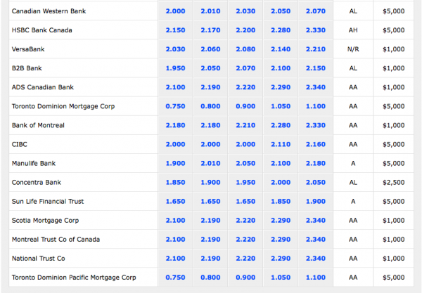 These rates seem to be significantly less than what you can get from the FI's highest on the GIC list, but I'm sure they are higher at times.