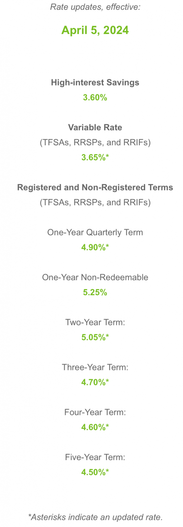 Hubert Term Deposit Rate Changes Effective April 5, 2024