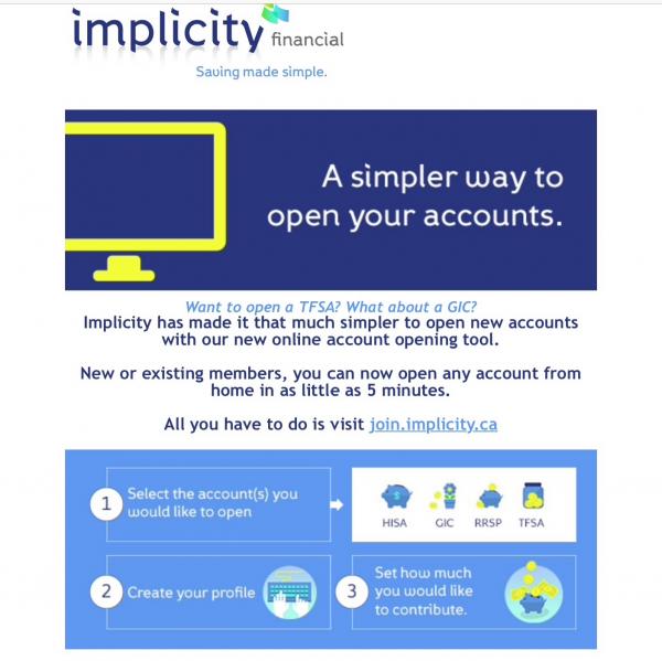 OfflineThanks, @GICinvestor. Yes, Implicity Financial has been working on an all-digital account opening process that many of the Manitoba credit unions and, indeed, many other credit unions and banks already have. Looking at the "join.implicity.ca" subdomain, it looks like they've selected Cumulus that Omnia Direct, FirstOntario, VantageOne, Niverville, Libro, and others use.