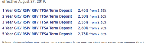 New lower rates as of Aug 27 2019 | Implicity Financial | Discussion forum This forum requires Javascript to be enabled for posting content Please consider registeringguest Log In Register Login name Password Remember me Register | Lost password? Select Forum Announcements New members welcome and introductions Site suggestions Credit card reward programs General comparisons General financial discussion GIC discussions Income tax filing Investing Mortgages RRSPs and RRIFs Small business accounts Tax Free Savings Accounts Your stories Achieva Financial Alterna Bank BMO Bridgewater Bank Canadian Tire CIBC Coast Capital Savings DUCA Credit Union EQ Bank Hubert Financial ICICI Bank Ideal Savings Laurentian Bank LBC Digital Luminus Financial Manulife Bank MAXA Financial MCAN Financial Meridian Credit Union Motive Financial motusbank National Bank Neo Financial Oaken Financial Omnia Direct Outlook Financial PC Financial Peoples Trust RBC Royal Bank Saven Financial Scotiabank Simplii Financial Steinbach Credit Union Tangerine Bank Vancity Wealth One Bank of Canada Wealthsimple AcceleRate Financial Ally B2B Bank Citizens Bank HSBC Implicity Financial Wyth Financial (formerly Concentra Bank) Zag Bank Zenbanx Search Advanced Search Advanced Search— Forum Scope —Current forumAll forums— Match —Match any wordMatch all wordsMatch phrase— Forum Options —Posts onlyTopic titles onlyPosts and topic titlesMinimum search word length is 3 characters - maximum search word length is 84 characters Search Home Discussion forum Implicity Financial New lower rates as of Aug 27 2019 Topic RSS New lower rates as of Aug 27 2019 Facebook Twitter Email this August 27, 20194:07 pm GICinvestor Member Members Forum Posts: 670 Member Since: April 26, 2019 Offline 1 I hope their HISA remains at 2.4% All RSS © Simple:Press New/Recently Updated Topics Up/Down Vote, Block User Brokerage investment savings accounts Finding the best GIC Rates TFSA with EQ? Amazon.ca knows too much about us???? 24/5 Round-The-Clock U.S. Stock Trading … Vanilla Prepaid Visa Card (product of Pe… Windows 11 Pros & Cons Laurentian LBC and B2B become the latest… External Transfers with Meridian New Promo Savings Accounts 4.70% (385% +… Motive Financial accounts migrating to N… Whaaat? Just this and no chocolates this… GIC stuck in processing Oaken App Issue & Voice Authenticati… Problems & Issues Linking External A… Limited Time Offer!! Open 1st Simplii TFSA to earn 3.90% for … Grow your savings with an amazing 2.75%*… Tangerine GIC rates
