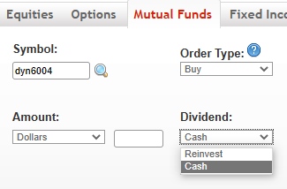 OfflineYes, just select "Dividend: Cash" instead of "Dividend: Reinvest" on each mutual fund order placed to buy DYN6004: