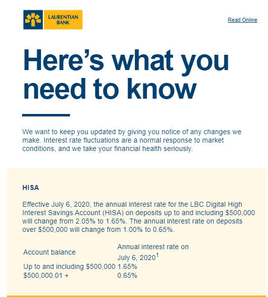 OfflineToday, I've got another email from LBC, this time with subject line "We’ve increased our GIC interest rates." It simply reiterated GIC rates from previous email, but talks nothing about HISA interest rate decrease.