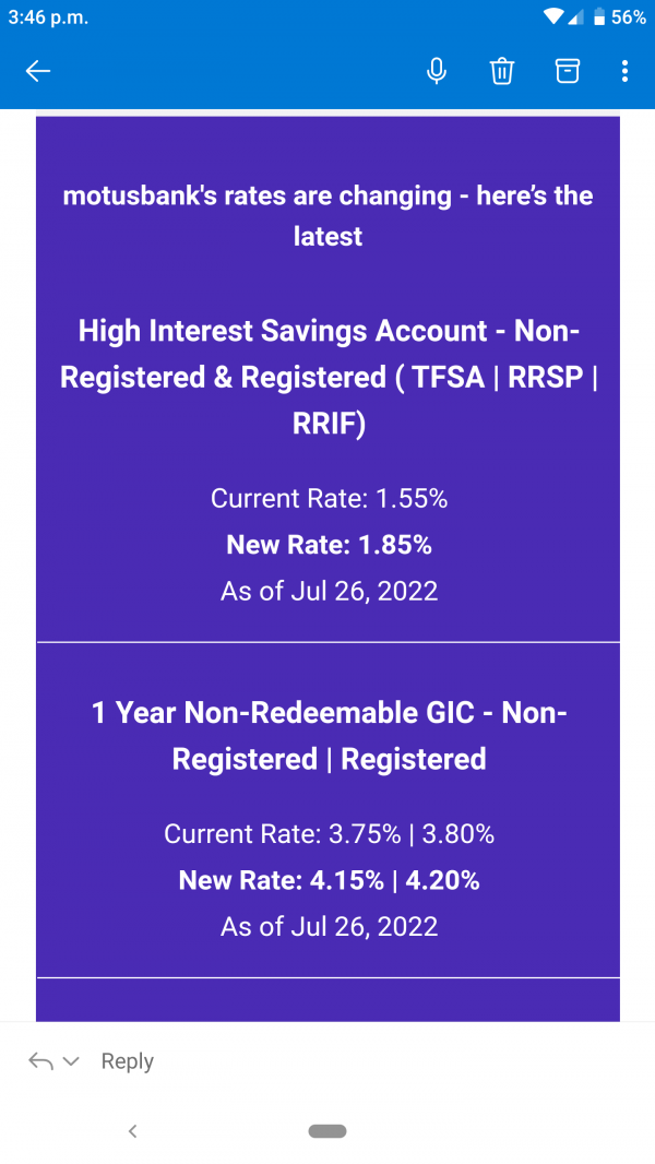 Motus Bank - Rates need updating