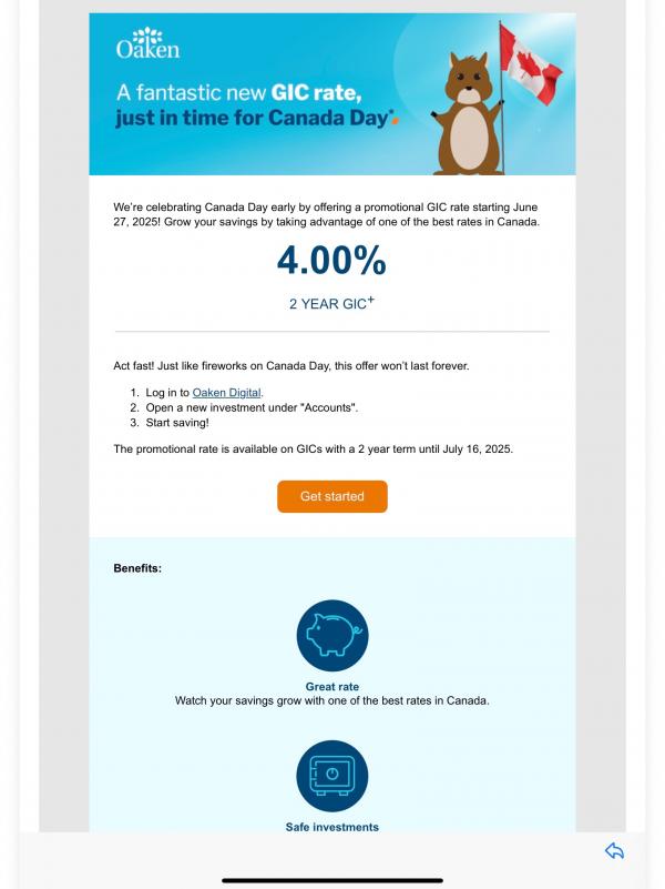 Well ... I JUMPED and I got it (Oaken 2Yr GIC @ 4.00%), with half the funds still 'On Hold' in my SA.