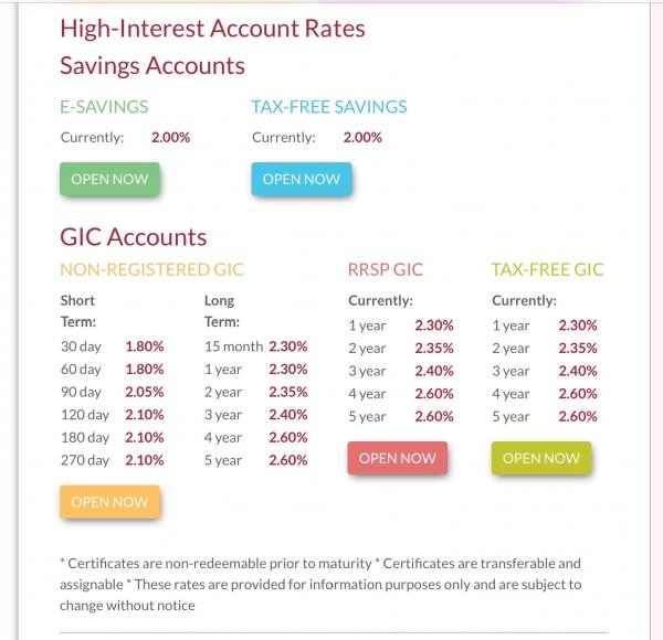 • 5 Year GIC – 2.65% (currently 2.95%)