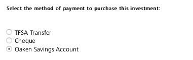 Well ... I applied on-line yesterday for that 18 month GIC, but I was only given two (2) options for payment:
