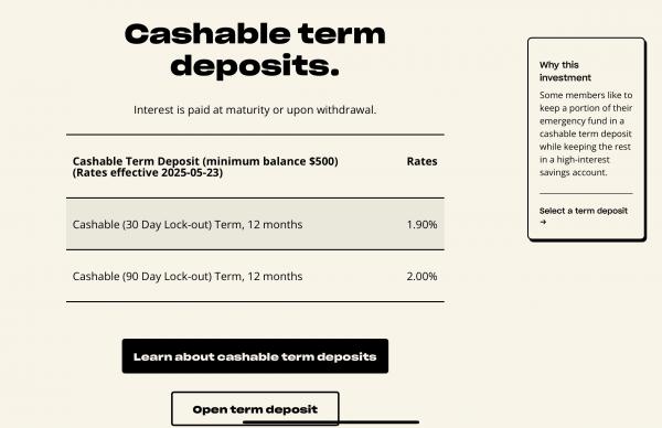 Here is what I use at Vancity. Rates were higher a few months ago. And their rules are clear ….. cash out any time … make no interest in lockout period … cash out any time after lock out period and earn interest for every day of investment.