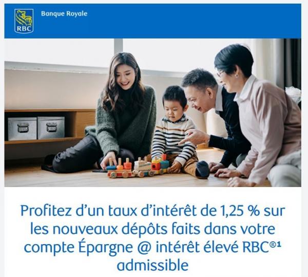 I've been with RBC for a long time, but I don't keep money there because there MUCH BETTER interest elsewhere, but today they made me an offer for 3 months at 1.25% (see offer in French). I was very surprised and I'll move there for the duration of the promo.