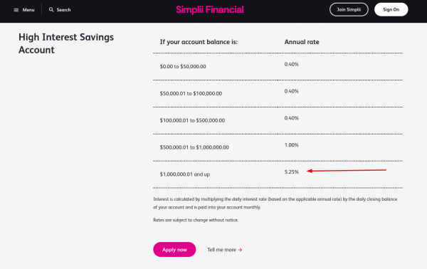 I’ve dealt with Simplii for a long time. Although their targeted 6% hisa promo is attractive, I would never give them a mil. You could walk into a big bank and they would do something competitive for a mil. And you could go to sleep at night knowing your money is about as safe as it could be when going outside of cdic coverage. Simplii hasn’t figured out that they need to attract 10 investors with $100k instead of trying to hit the home run with million dollar investors. It’s not going to work for them. The 6% will attract some short term investors/investment and gone again when it’s done. Their base rates are just not competitive. It’s not like the old days with bricks and mortar, everyone is linking online accounts…so when rates are no good…with just a few clicks, you can “move your money”.