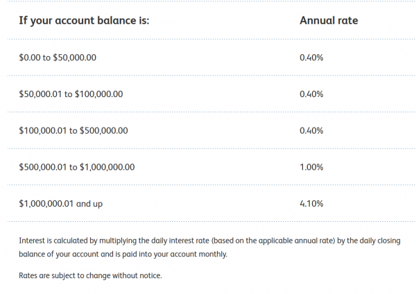 "I think the rate tiers for $500,000 and $1 million+ are moot."I think those people are more concerned about the credit quality of the institution. Think Silicon Valley Bank, First Republic, etc. In Canada, we had PACE C.U. Of course, Simplii's parent is CIBC for what that is worth.