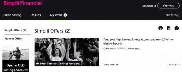 Can someone please load the T&C? I have activated the 5.50% offer, but now that I've done so, it doesn't let me click through to see the conditions. Usually Simplii doesn't pay interest out until about 15 days after the end of promo (no compounding). Is that the case this time as well?