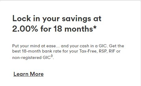 Tangerine are offering an 18 month GIC paying 2%. A few years ago, i was able to get a quarter point added to a Tangerine GIC.