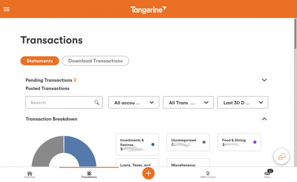 OfflineI clicked on Transactions and am taken to https://www.tangerine.ca/app/#/transactions.