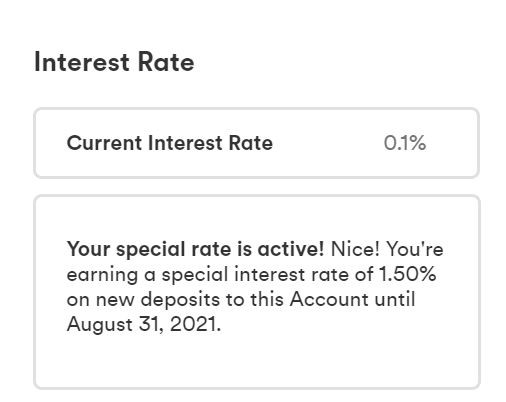 Eligible new deposits to these Accounts from April 8, 2021 to August 31, 2021 (up to a maximum of $1,000,000 † per Applicable Account Type*) will earn your special rate of 1.50% .Once you’ve activated, here’s how it will work: