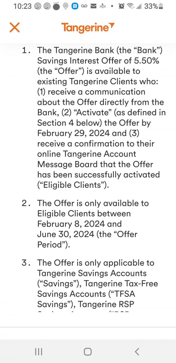 OfflineAlso, received this offer today. I moved most of my cash out of Tang although it would appear that I would only need to move funds to the chequeing account before Feb 7th to meet the condition of new money deposited to the eligible savings accounts. Whether I would receive the targeted offer would be uncertain had I did this.
