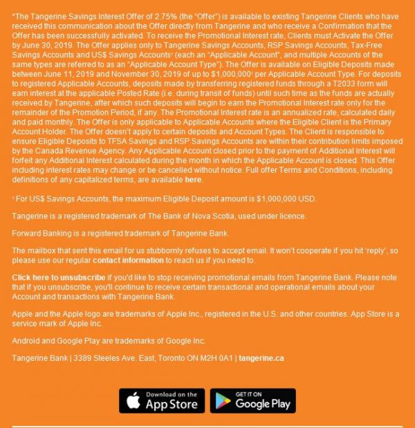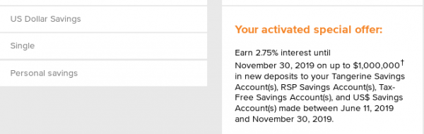 Hit the ‘Activate Now’ button below (or in the banner above) to earn 2.75% interest* on new deposits to your Tangerine Savings Account(s), Tax-Free Savings Account(s) and RSP Savings Account(s). And now, your special interest rate also applies to US$ Savings Accounts.