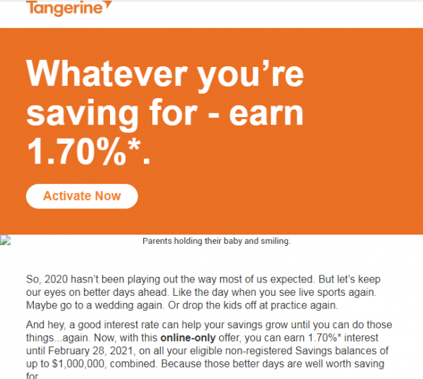 Simplli Financial is giving between 2% to 2.3%, as opposed to Tangerines 1.7% . You might want to check that out.
