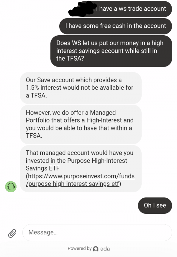 Hi Norman and Bob. Thank you for your reply. My TFSA is with wealth simple trade