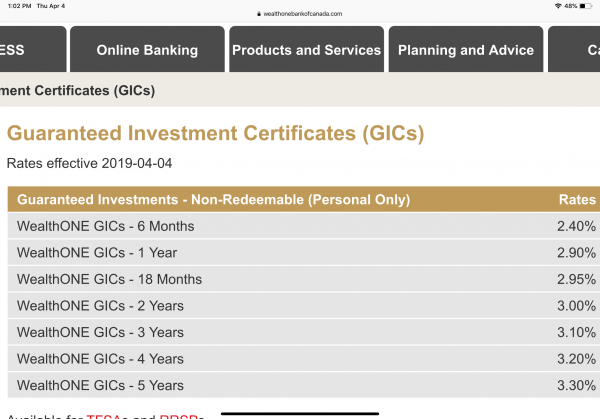 Decreasing all GIC rates. New rates will range from 2.65% for 1 year to 2.85% for 5 years.