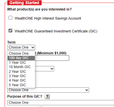 But, their GIC page doesn't show the rate for their 180-day GIC's: