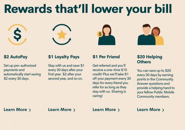 $2 less for auto pay, $1 less for every year of loyalty plus what you mention about community help and referrals. There are lots of referral offers on Vancouver Craigslist which are helping them with THEIR monthly bill and they say you can get your bill down to zero. The latter is part of a model of an American company that offers pocket wifi/data. So I would put up an add on CL too...why not?