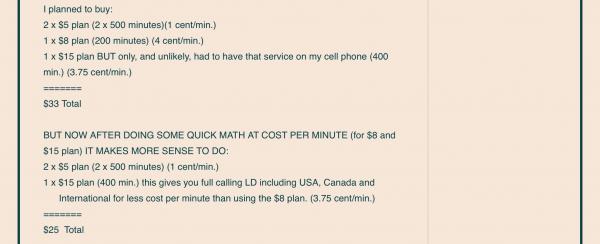 200 U.S. & Canada Long Distance minutes. $8 (4 cent/min.) <= this one I would not bother buying and is really for US calling only BUT if it was your only add-on after your minutes ran out, you would begin to us them.