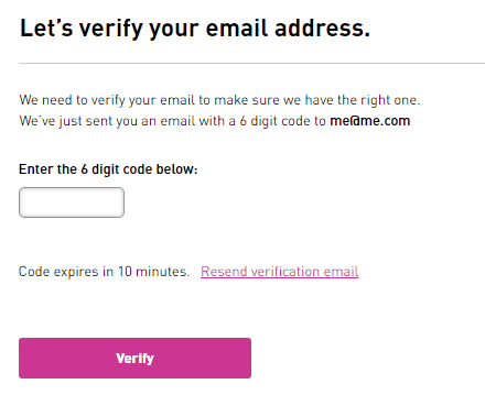 Lastly for the general account setup, they will have to enter a confirmation code sent to their email address.